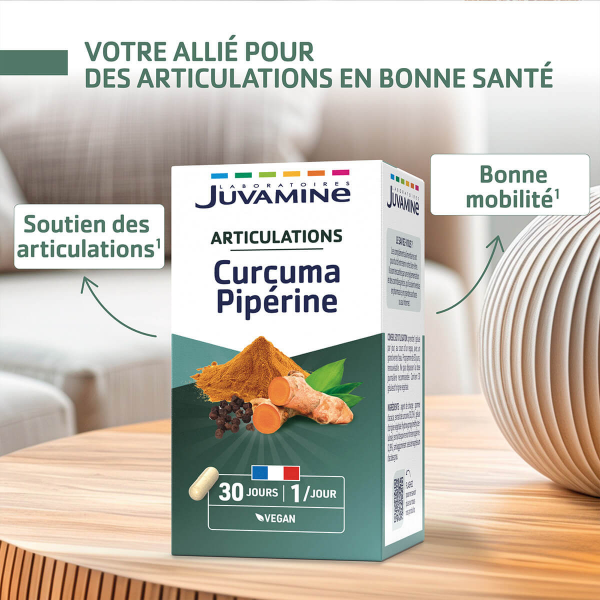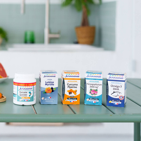 Les Laboratoires Juvamine ont élaboré une formule à base de Curcuma, complétée de Pipérine pour aider vos articulations. En savoir +