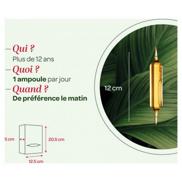 Prendre une ampoule par jour pure ou diluée dans un demi-verre d'eau.