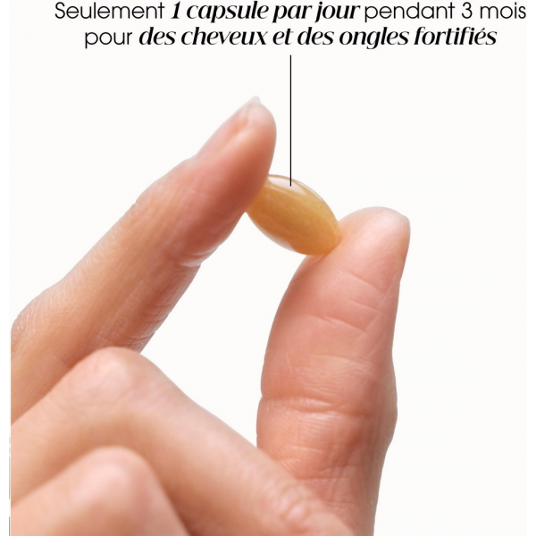 Cette cure de 3 mois contient égalemnt de la Biotine, des Vitamines (B3, B6 et E), du Zinc et du Sélénium, des micronutriments* essentiels pour apporter force et vitalité aux cheveux et aux ongles.