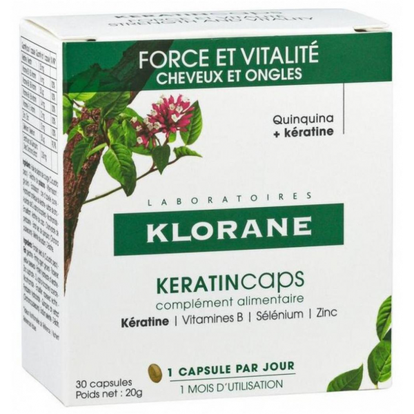 Le complément alimentaire Klorane Quinine Keratincaps est un véritable allié pour ceux qui souhaitent maintenir des cheveux forts et des ongles en bonne santé. Nourrissant de l'intérieur et agissant en synergie avec le soin Force Kératine de Klorane, il contribue à prévenir la fragilité capillaire et l'altération des ongles, offrant ainsi une solution complète pour renforcer la structure capillaire.