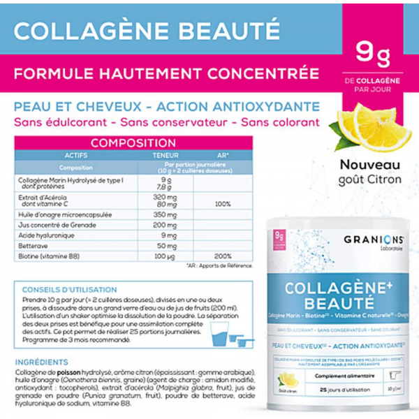 Granions Collagène+ Beauté Sublimlift Saveur Citron Poudre 255 g