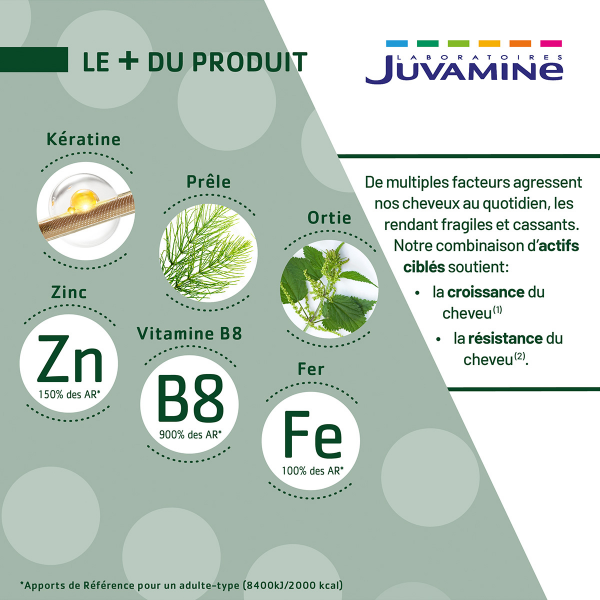 Les Laboratoires Juvamine ont élaboré un programme croissance & résistance pour fournir aux cheveux certains nutriments essentiels :