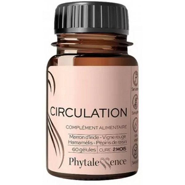 Phytalessence Circulation 60 Gélules est un complément alimentaire spécialement conçu pour les problèmes circulatoires. Sa formule à base d'un complexe de 4 plantes (marron d'Inde, vigne rouge, hamamélis, pépins de raisin) offre une solution naturelle pour améliorer la circulation sanguine. Les gélules, 100% végétales, sont sans gluten et sans lactose, ce qui les rend accessibles à un large public.