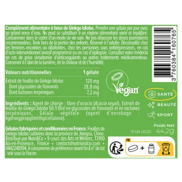Nutri&Co Ginkgo Biloba Gélules x 120