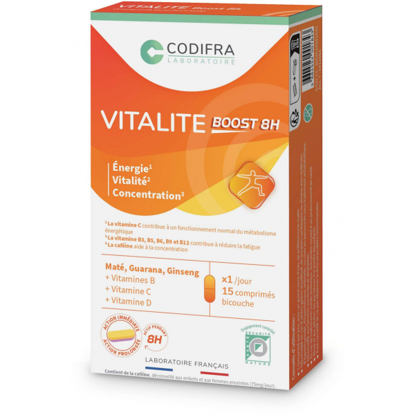 Grâce à sa double action immédiate et prolongée, VITALITE BOOST 8H maintient l’énergie tout au long de la journée, sans effet rebond, et permet de lutter contre la fatigue physique et mentale.