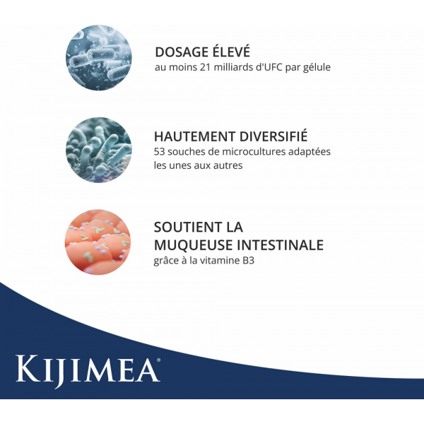 Kijimea K53 Advance soutient la muqueuse intestinale grâce à la vitamine B. Il contient une composition unique de 53 souches bactériennes soigneusement sélectionnées, hautement concentr... En savoir +