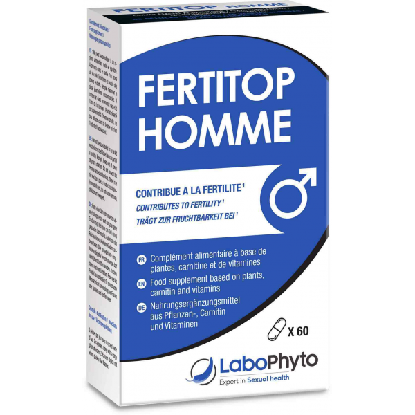 Labophyto Fertitop Homme 60 Gélules Végétales est un complément alimentaire spécifiquement élaboré pour améliorer la fertilité masculine et notamment pour les hommes qui souhaitent optimiser leurs chances d'avoir un enfant. Riche en vitamines et micronutriments, il agit à la fois sur la qualité et sur la quantité du sperme. Ses actifs ont une influence bénéfique sur la fertilité masculine : la Maca : cette plante a une influence bénéfique sur la fertilité ; le Safran : cette épice contribue à augmenter le volume du sperme ; le Zinc : cet oligo-élément contribue à une fertilité et une reproduction normales ; le Sélénium : cet oligo-élément favorise une spermatogénèse normale ; la vitamine E : elle contribue à protéger les cellules du stress oxydatif ; la vitamine B5 : elle contribue à la synthèse normale et au métabolisme normal des hormones stéroïdes ; la L-Carnitine et la Taurine. Fabriqué en France.