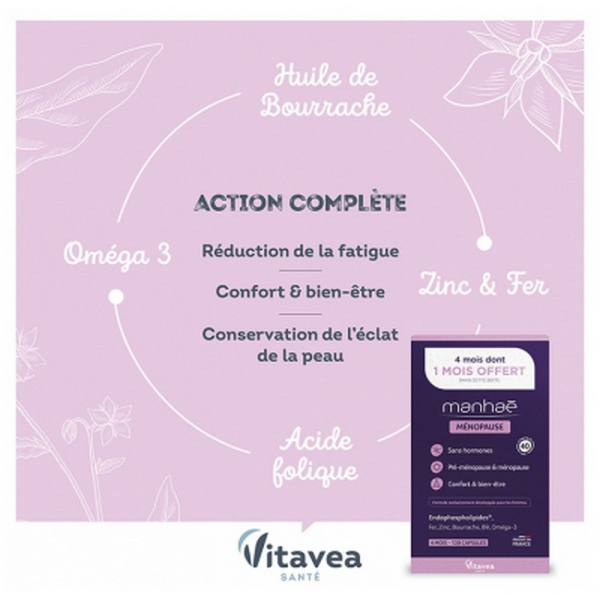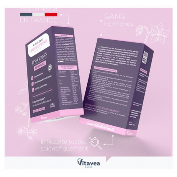 Pour une efficacité optimale, utiliser Manhaé Féminité Ménopause sur une période de 4 mois.