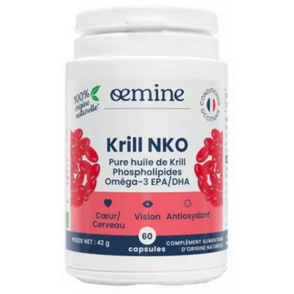 Découvrez Oemine Krill 60 Capsules, un complément alimentaire innovant de la catégorie des acides gras essentiels. Chaque capsule renferme de l'huile de krill NKO, riche en acide eicosapentaénoïque (EPA) et en acide docosahexaénoïque (DHA), contribuant ainsi au maintien d'une fonction cardiaque normale et à une vision saine.