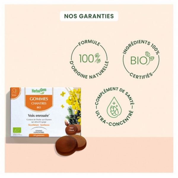 Pensez également aux Gommes Chantres, le format nomade, pour apaiser et adoucir les cordes vocales fragilisées. En savoir +