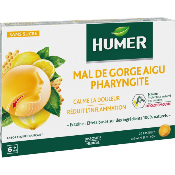 Humer Mal de Gorge Aigu Pharyngite Miel Citron Pastilles x 20