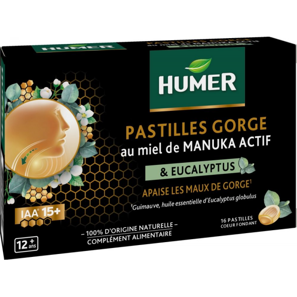 Humer Pastilles Gorge au Miel de Manuka Actif & Eucalyptus x 16