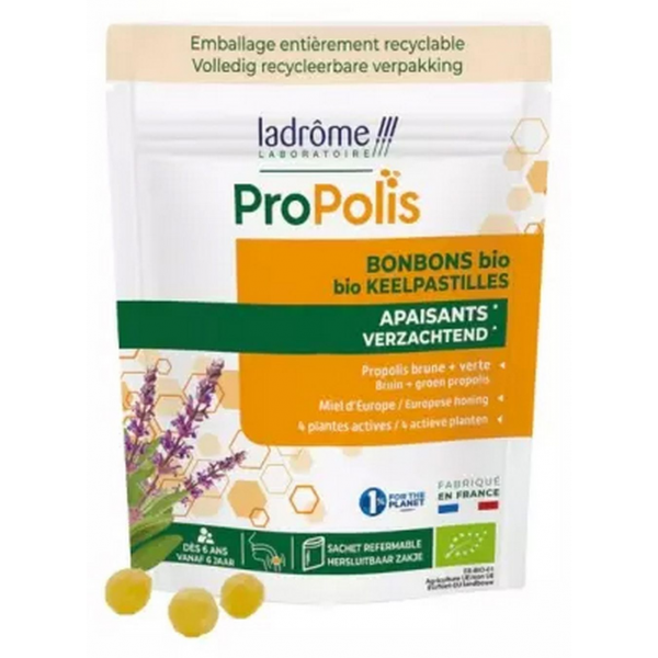Offrez-vous une expérience apaisante et bienfaisante avec les Ladrôme Propolis Bonbons Apaisants Bio. Leur formule naturelle à base de propolis, de miel, d'extraits concentrés de plantes et d'huiles essentielles en fait un allié précieux pour soutenir le bien-être au quotidien. Certifiés par FR-BIO-01, Agriculture UE/non UE, ces bonbons sont le fruit d'une fabrication française, gage de qualité et d'excellence. Profitez des bienfaits de la propolis et du miel dans une formule pratique et savoureuse pour une sensation apaisante et réconfortante à tout moment de la journée.