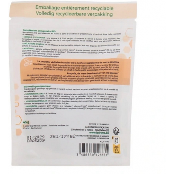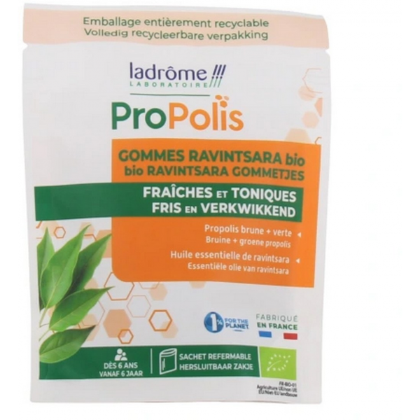 Les Gommes Propolis Ravintsara de Ladrôme sont un complément alimentaire élaboré entièrement à partir d’ingrédients issus de l’Agriculture Biologique. En savoir +