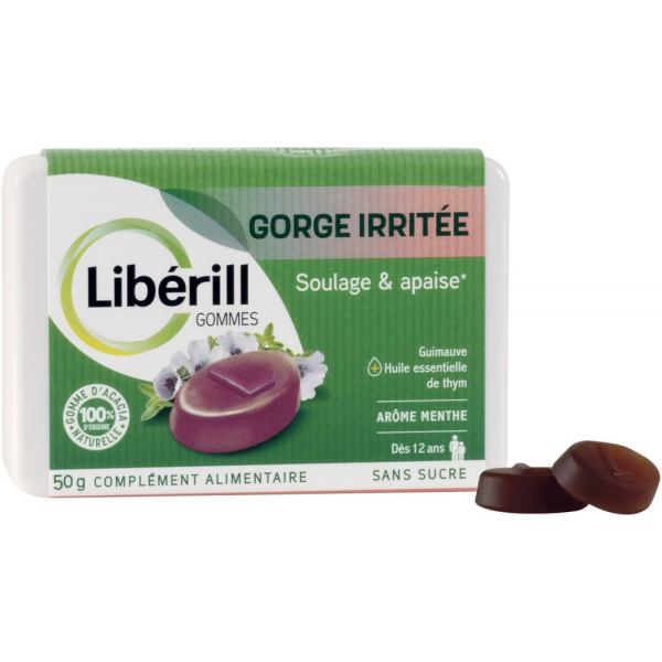 Libérill gommes gorge irritée est un complément alimentaire qui soulage et apaise la gorge des irritations en cas d’irritations de la gorge et du pharynx grâce à l'extrait de racine de guimauve. En savoir +