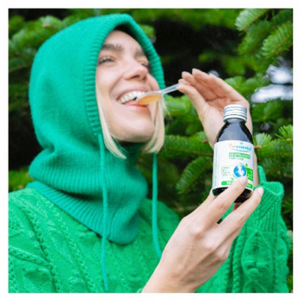 La formule 100% d’origine naturelle du sirop toux Respiratoire Puressentiel, associant des huiles essentielles à des extraits végétaux (échinacée, miel, propolis et acérola), est idéale pour apaiser la gorge, le pharynx et les cordes vocales.