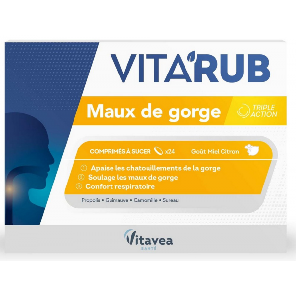 Vitavea Santé Vita'Rub Maux de Gorge Comprimés à Sucer x 24