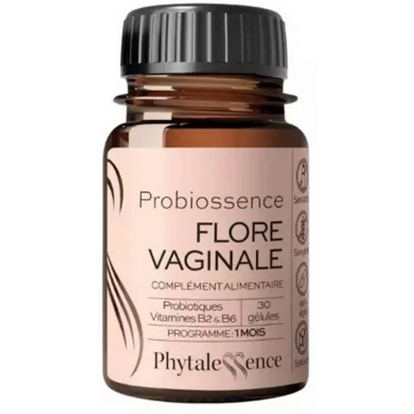 Les gélules Phytalessence Probiossence Flore Vaginale sont spécialement formulées pour contribuer à l'équilibre de la flore vaginale. Composées de probiotiques tels que le Lactobacillus acidophilus et le Lactobacillus reuteri, ainsi que de vitamines B2 et B6, ces gélules végétales offrent une solution naturelle et sans gluten, lactose ni sucre.