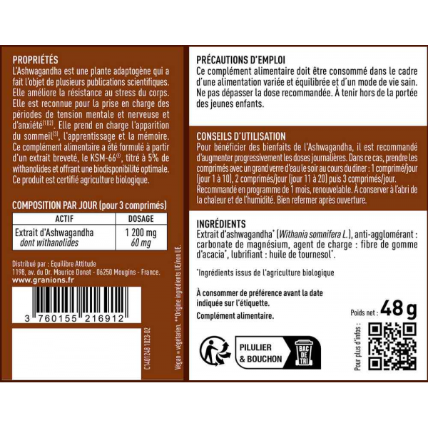 Granions Ashwagandha Bio 1200 mg Comprimés x 60