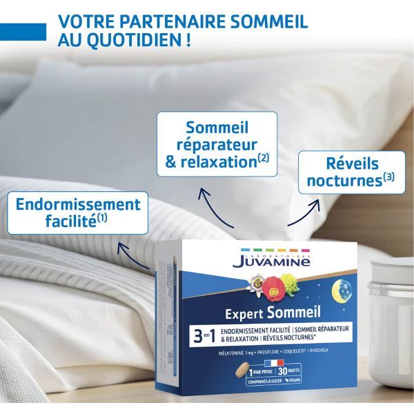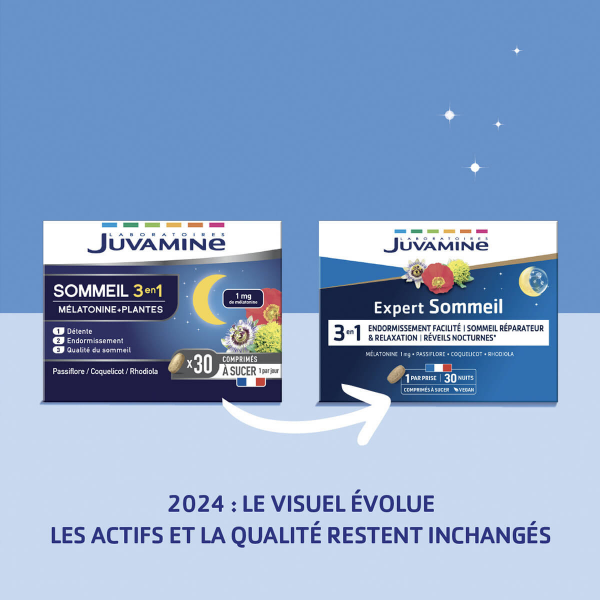 Juvamine Sommeil 3 en 1 Mélatonine + Plantes Comprimés à Sucer x 30