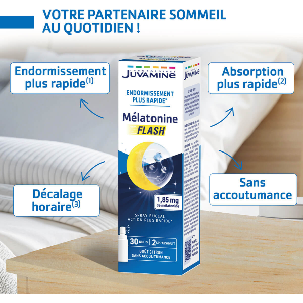 Le SOMMEIL MELATONINE SPRAY BUCCAL, 15 ml est un allié de taille pour pallier aux troubles du sommeil. Grâce à sa formule unique, ce spray buccal offre une absorption 4,6 fois plus rapide que les compléments traditionnels, ce qui en fait une solution efficace pour réduire les réveils nocturnes et les difficultés d'endormissement. En administrant 1.85 mg de mélatonine par 2 pulvérisations, ce produit favorise une diminution du temps nécessaire pour s'endormir. La mélatonine, considérée comme l'hormone du sommeil, contribue ainsi à améliorer la qualité du sommeil.