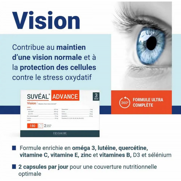 Suvéal Advance de Densmore est un complément alimentaire qui aide à maintenir une vision normale. En savoir +
