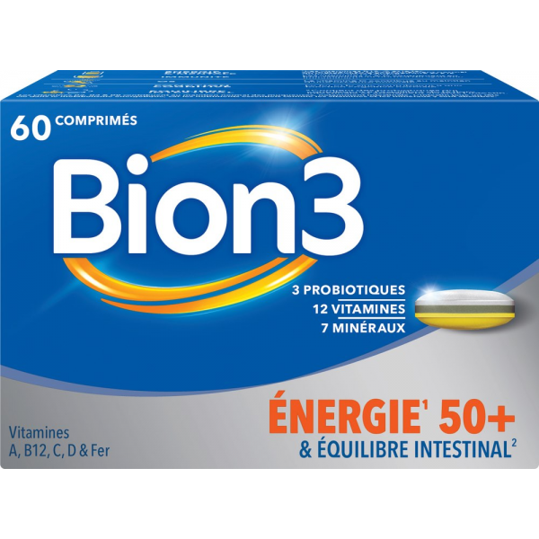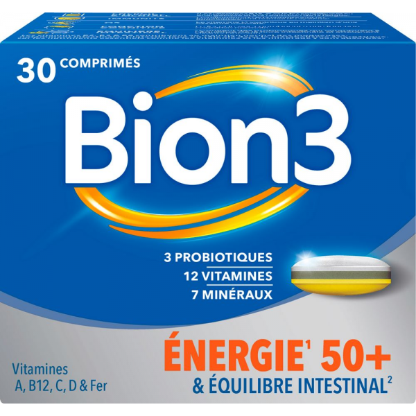 Le Bion 3 vitalité 50+ (anciennement appelé Bion 3 Sénior) est un complément alimentaire destiné aux personnes de plus de 50 ans. La formule de Bion 3 vitalité 50+ est identique à celle de Bion 3 Sénior.
