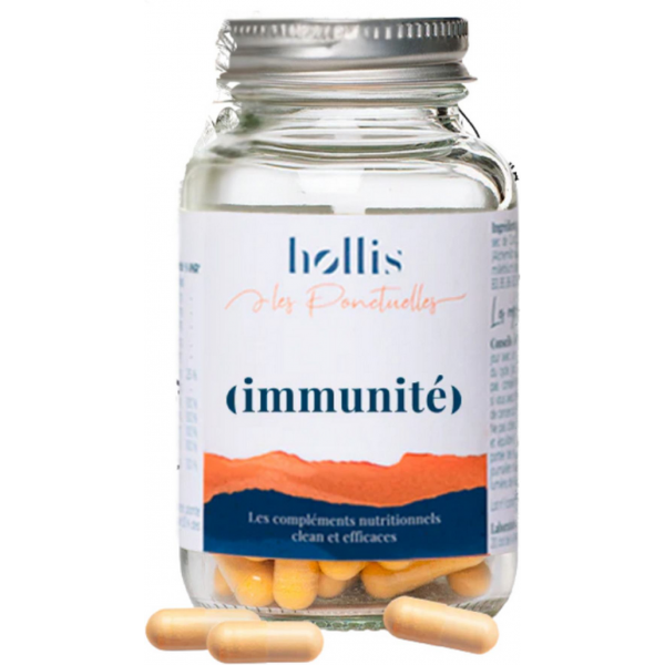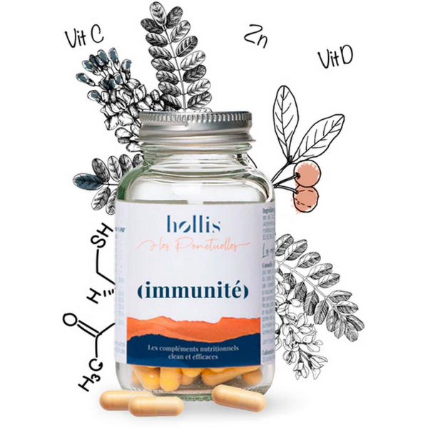 Hollis Immunité associe vitamine C, vitamine D, zinc, acérola, propolis, N-Acétyl-Cystéine et fibres prébiotiques dans une seule gélule. Cette synergie d’actifs soutient l’organisme face aux infections, qu’elles soient virales, microbiennes ou fongiques, et aide à préserver l’équilibre des voies respiratoires. La formule ultra clean ne contient aucun excipient chimique et offre un apport optimal en nutriments essentiels pour une action efficace sur les défenses naturelles.