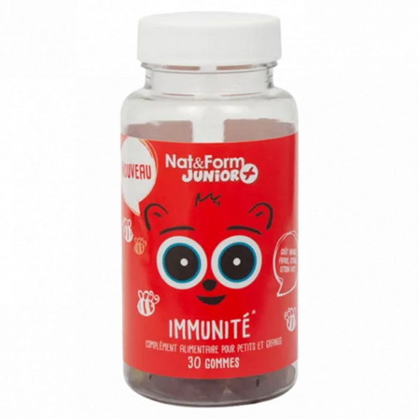 Nat&Form Ours + Immunité contient de la gelée royale, de la vitamine C, de la propolis et du miel. 30 oursons, fruités et vitaminés. En savoir +