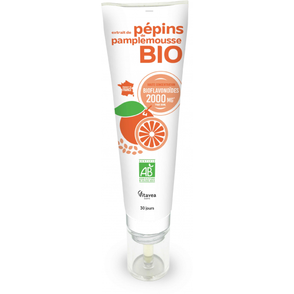 L’extrait de pépins de pamplemousse Bio est un complément alimentaire à base d’extrait de pépins de pamplemousse et de vitamine C, il possède une action protectrice.