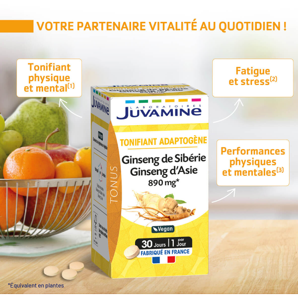 Juvamine Ginseng de Sibérie Ginseng d'Asie Comprimés x 30