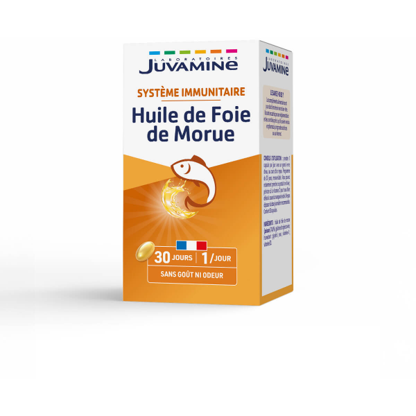 Complément alimentaire à base d’huile de foie de morue, de Vitamine A et de Vitamine D. Ne peut remplacer une alimentation variée et équilibrée et un mode de vie sain. A conserver dans un endroit frais et sec. Tenir hors de portée des jeunes enfants. Déconseillé aux enfants de moins de 3 ans Ne pas prendre simultanément un autre complément alimentaire contenant de la vitamine A.