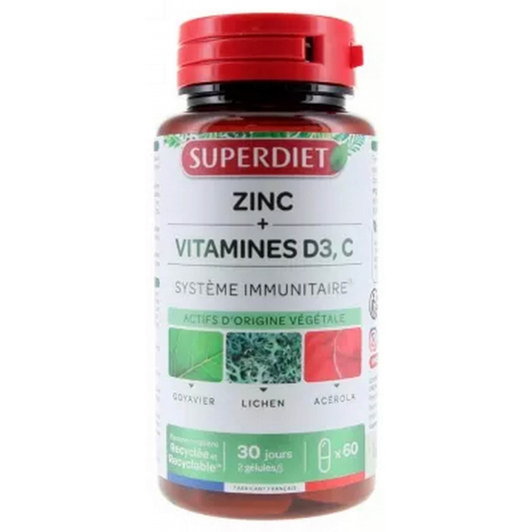 Superdiet Zinc + Vitamines D3 C Gélules x 60