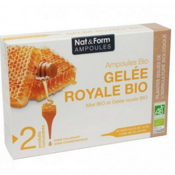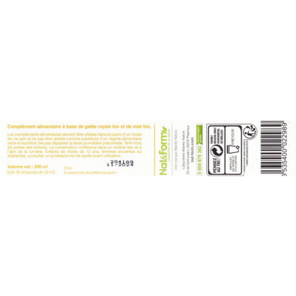 Complément alimentaire à base de gelée royale et miel bio. Nat&Form Ampoules. En savoir +