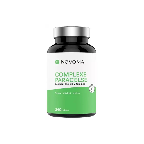 Citrate de choline capsule vegétale (agent d-enrobage: hydroxypropylméthylcellulose) extrait sec de Bambou (Bambusa arundinacea pousse) Prele en poudre (Equisetum arvense parties aériennes) extrait sec de Dunaliella (Dunaliella salina thalle) 10% beta-carotene acide pantothénique (D-pantothenate de calcium) (chlorhydrate de thiamine) vit. B6 (chlorhydrate de niacine (nicotinamide) vit. B2 (riboflavine) vit. 81 pyridoxine) acide folique (acide ptéroylmonoglu- tamique) biotine (D-biotine) vit. B12 (méthylcobalamine).