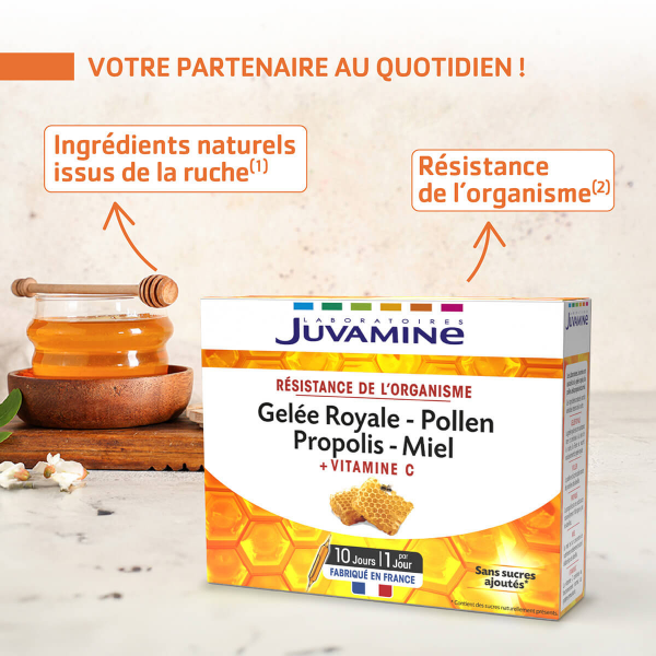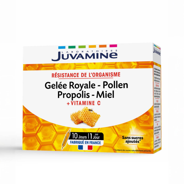 Juvamine Gelée Royale Pollen Propolis Miel + Vitamine C Ampoules x 10