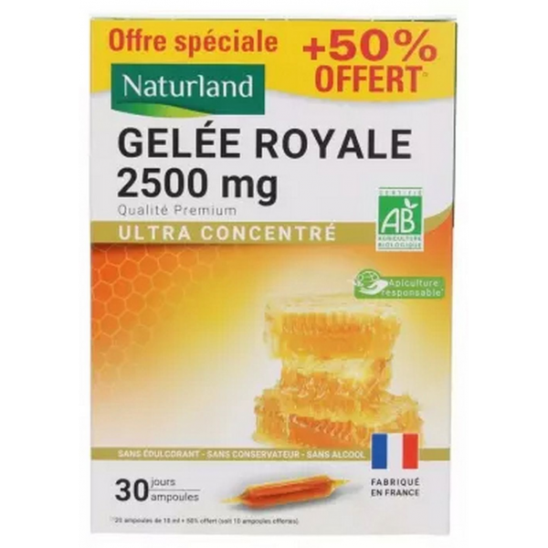 Naturland Gelée Royale 2500 mg Bio Ampoules x 20 + 10 Offertes