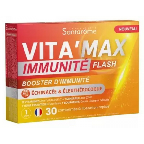 agent de charge : cellulose microcristalline acide L-ascorbique oxyde de magnésium marin poudre d-Echinacée pourpre (Echinacea purpurea (L.) Moench) anti-agglomérants : phosphates de calcium carbonate de magnésium polyvinylpolypyrrolidone bisglycinate ferreux acétate de D-alpha-tocophéryle anti-agglomérant : mono- et diglycérides d-acides gras extrait sec d-Eleuthérocoque (Eleutherococcus senticosus (Rupr. et Maxim) Maxim) oxyde de zinc nicotinamide levure enrichie en sélénium macérats glycérinés [eau glycérine alcool bourgeon de feuille de Cassis (Ribes nigrum L.) jeune pousse de Romarin (Rosmarinus officinalis L.) jeune pousse de Séquoia (Sequoiadendron giganteum (Lindl.) J.Buchholz)] huile essentielle de Ravintsara (Cinnamomum camphora (L.) J. Presl) acétate de rétinyle gluconate de manganese D-pantothénate de calcium sulfate de cuivre cholécalciférol cyanocobalamine chlorhydrate de pyridoxine chlorhydrate de thiamine riboflavine acide folique molybdate de sodium D-biotine.