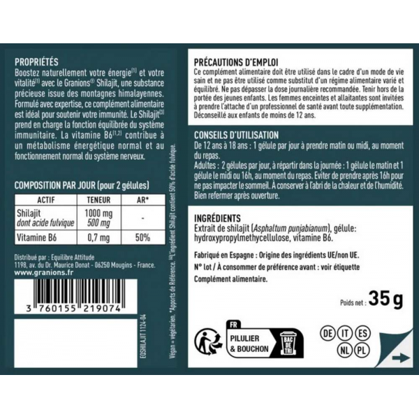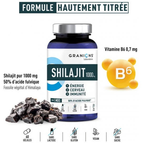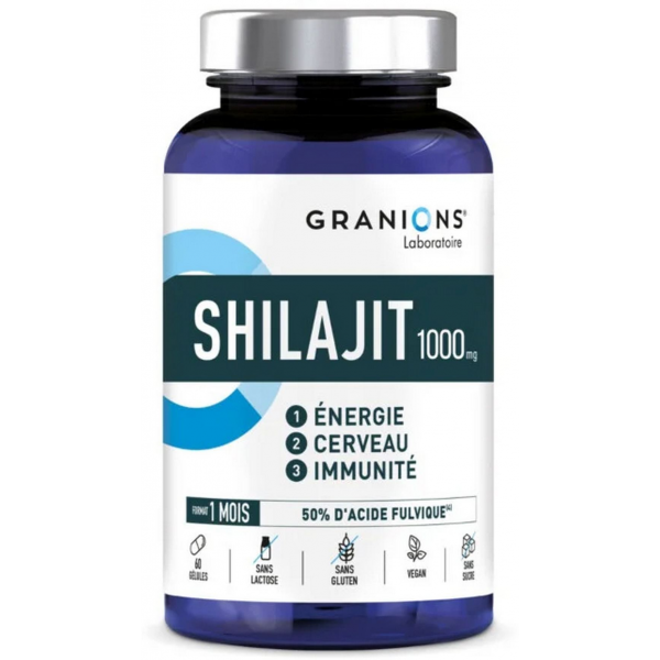 Granions Shilajit 1000 mg est un complément alimentaire pour l'énergie, le cerveau, et immunité. En savoir +