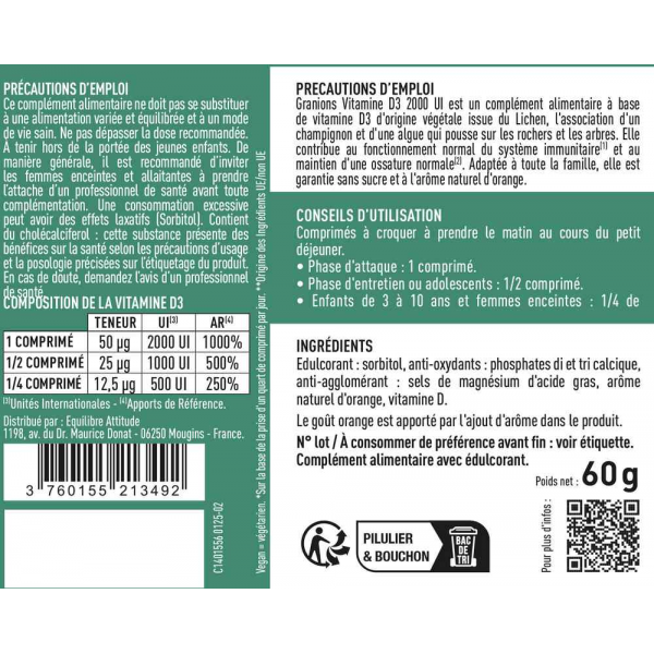 Il est conseillé de consommer ce complément alimentaire dans le cadre d’une alimentation variée et équilibrée et d’un mode de vie sain. Ne pas dépasser la dose recommandée. À tenir hors de la portée des jeunes enfants. De manière générale, il est recommandé d’inviter les femmes enceintes et allaitantes à prendre l’attache d’un professionnel de santé avant toute complémentation. Ce complément alimentaire n'est pas un médicament.