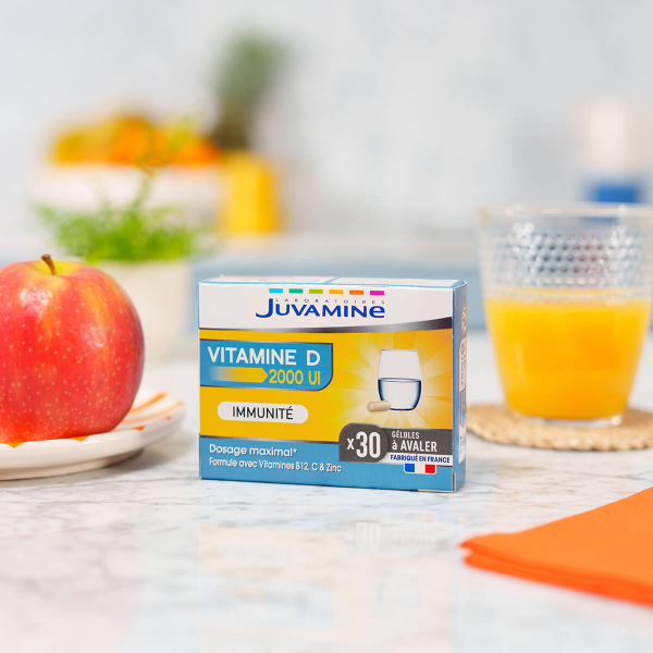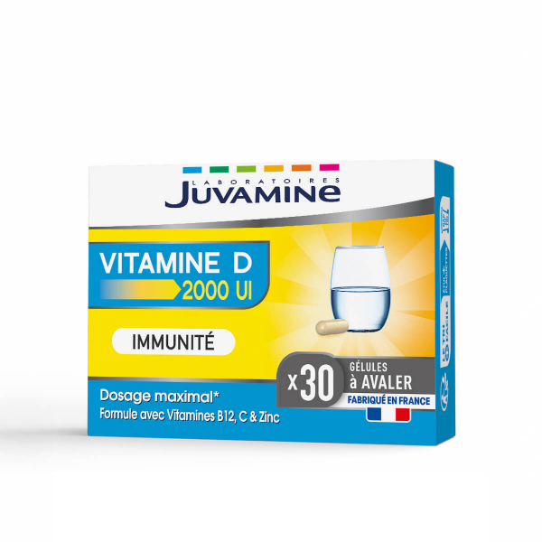 Lors des périodes hivernales, ou en cas de fortes sollicitations, le capital immunité peut être diminué. Les Laboratoires Juvamine ont développé des gélules de vitamine D, complétées par de la vitamine B12, de la vitamine C et du zinc, quatre actifs reconnus pour votre système immunitaire. La vitamine D contribue au fonctionnement normal du système immunitaire.