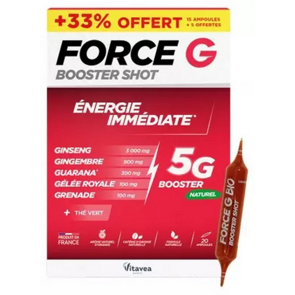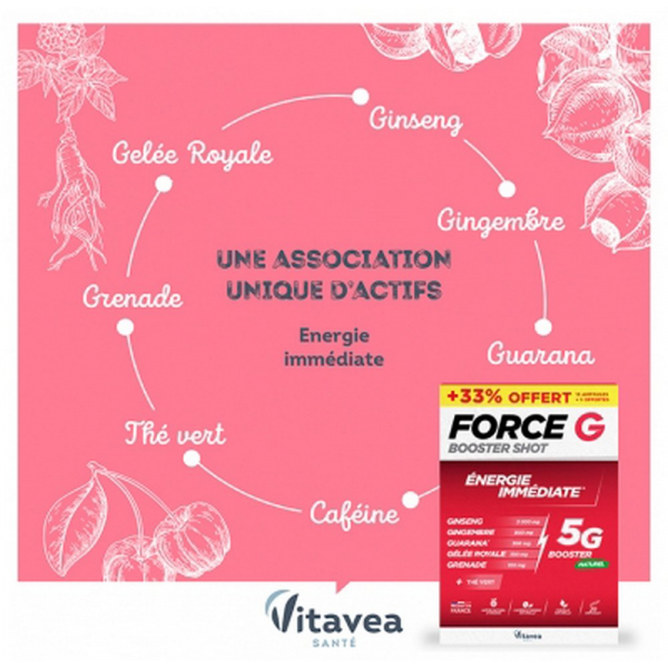 La formule du Force G Booster Shot de Vitavéa est votre alliée pour une énergie immédiate.