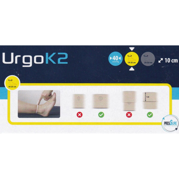 Urgo K2 Kit Bandes de Compression est un dispositif médical doté d'un système compressif, préconisé dans le traitement des ulcères veineux aux jambes, de l'œdème d'origine veineuse et du lymphœdème, justifiant d'une compression forte (patients avec un IPS > 0,8).