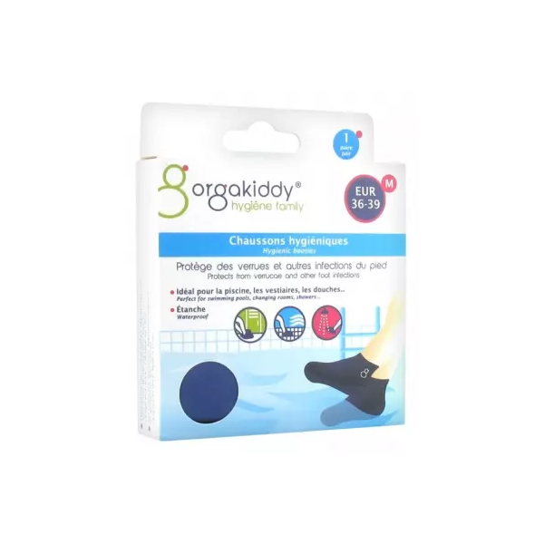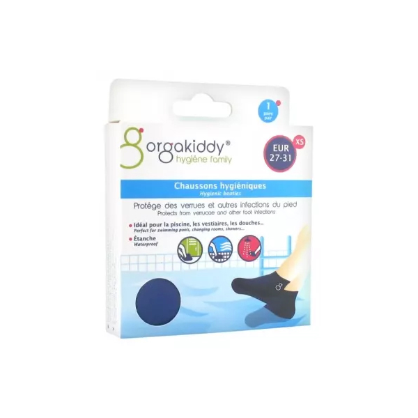 Les chaussons hygiéniques Orgakiddy sont conçus pour protéger efficacement les pieds contre les verrues et autres infections du pied. Idéaux pour la piscine, les vestiaires, les douches, etc., ils évitent le contact direct avec le sol et favorisent l'hygiène. Leur étanchéité permet de les porter en toutes circonstances et même de se baigner avec des pansements. Disponibles en trois tailles (XS, S, M), ils offrent une protection adaptée à chaque pointure, et sont d'une grande aide pour enfiler plus facilement les chaussons en mettant un léger voile de talc. Ces chaussons sont la solution parfaite pour protéger les pieds dans les environnements à risque d'infection.