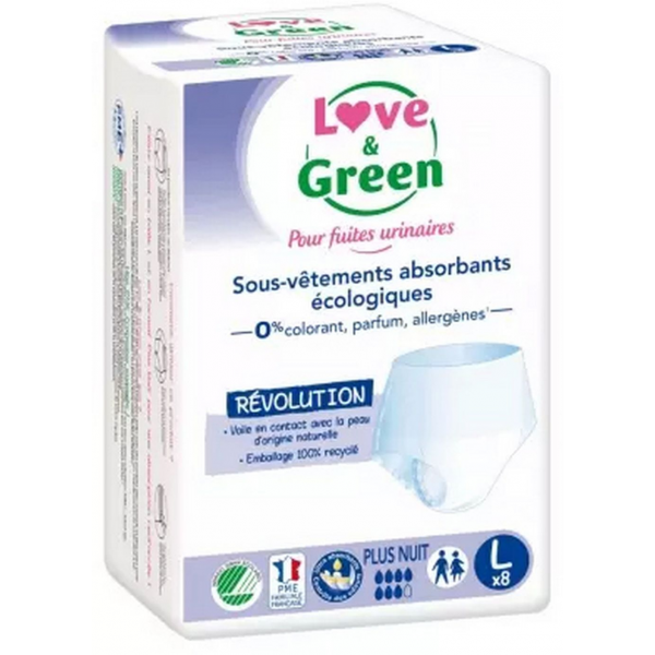 Love & Green pour Fuites Urinaires Nuit Sous-Vetements Absorbants Protections x 8