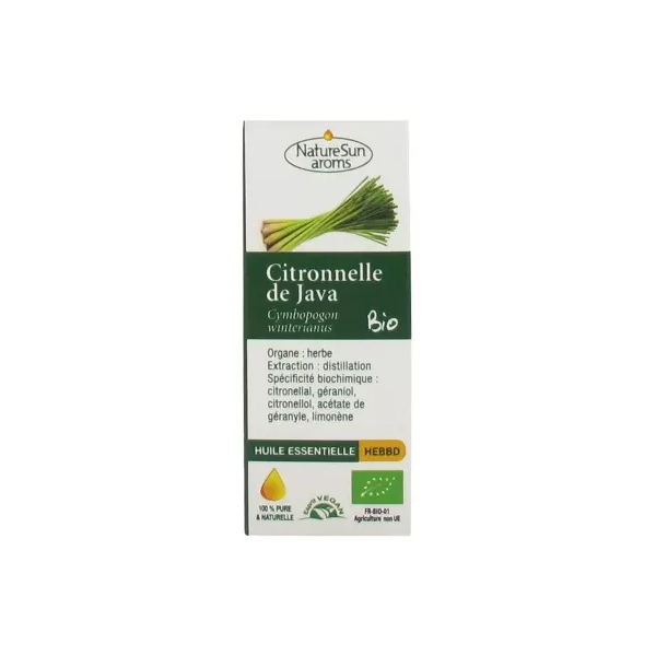 NatureSun Aroms Huile Essentielle Citronnelle de Java (Cymbopogon winterianus) Bio 10 ml est une huile essentielle de citronnelle de java bio. En savoir +