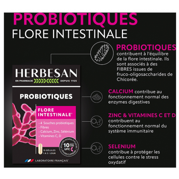 Herbesan ProBiotiques Flore Intestinale Gélules x 15