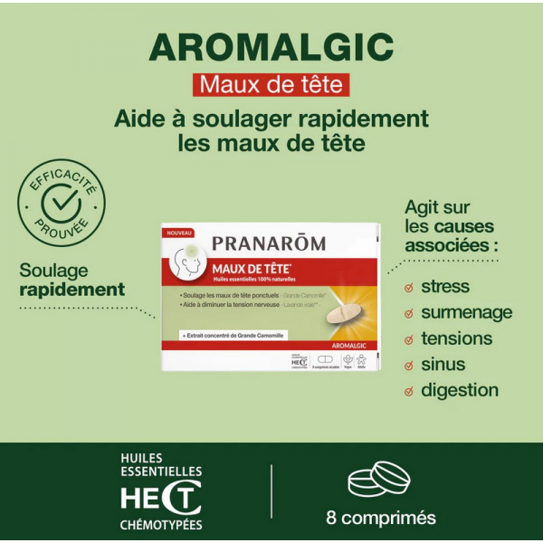 Pranarôm Aromalgic Maux de Tête Comprimés x 8