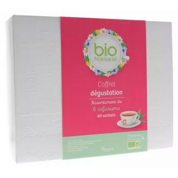 Le coffret dégustation de Vitavea est un assortiment de 6 infusions bio, contenant 10 sachets de différentes saveurs. L'infusion au thym est réputée pour ses bienfaits pour la fonction respiratoire et les gorges irritées. Idéale pour apaiser les premiers désagréments hivernaux. L'infusion Relax favorise la relaxation du corps et de l'esprit, grâce à l'oranger et à la camomille. La Menthe Nanah soutient la digestion grâce à la menthe marocaine et à la menthe poivrée. Le mélange Gingembre Citron apporte un regain d'énergie avec ses notes épicées de gingembre et son goût délicatement acidulé de citron. Pour une nuit paisible, l'infusion Sommeil est parfaite avec sa combinaison de verveine et de marjolaine. Enfin, l'infusion Pure Détox, avec du frêne, de la menthe poivrée et du basilic, offre une pause bien-être pour favoriser l'élimination et la légèreté intérieure.