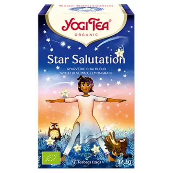 Yogi Tea Star Salutation Bio 17 Sachets est une préparation Bio pour infusion ayurvédique aux plantes et aux épices. Ce mélange unique contient des plantes aromatiques telles que le tulsi, associées à de la menthe fraîche, de la citronnelle et à une légère note fruitée d'huile de pamplemousse rose. Savourez cette tisane à la douce saveur pour un effet vivifiant qui vous aidera à vous sentir connecté et à vous concentrer à nouveau sur l'essentiel. Certifié Agriculture Biologique et contrôlé par IT-BIO-006, ce produit est également adapté aux régimes végétaliens.